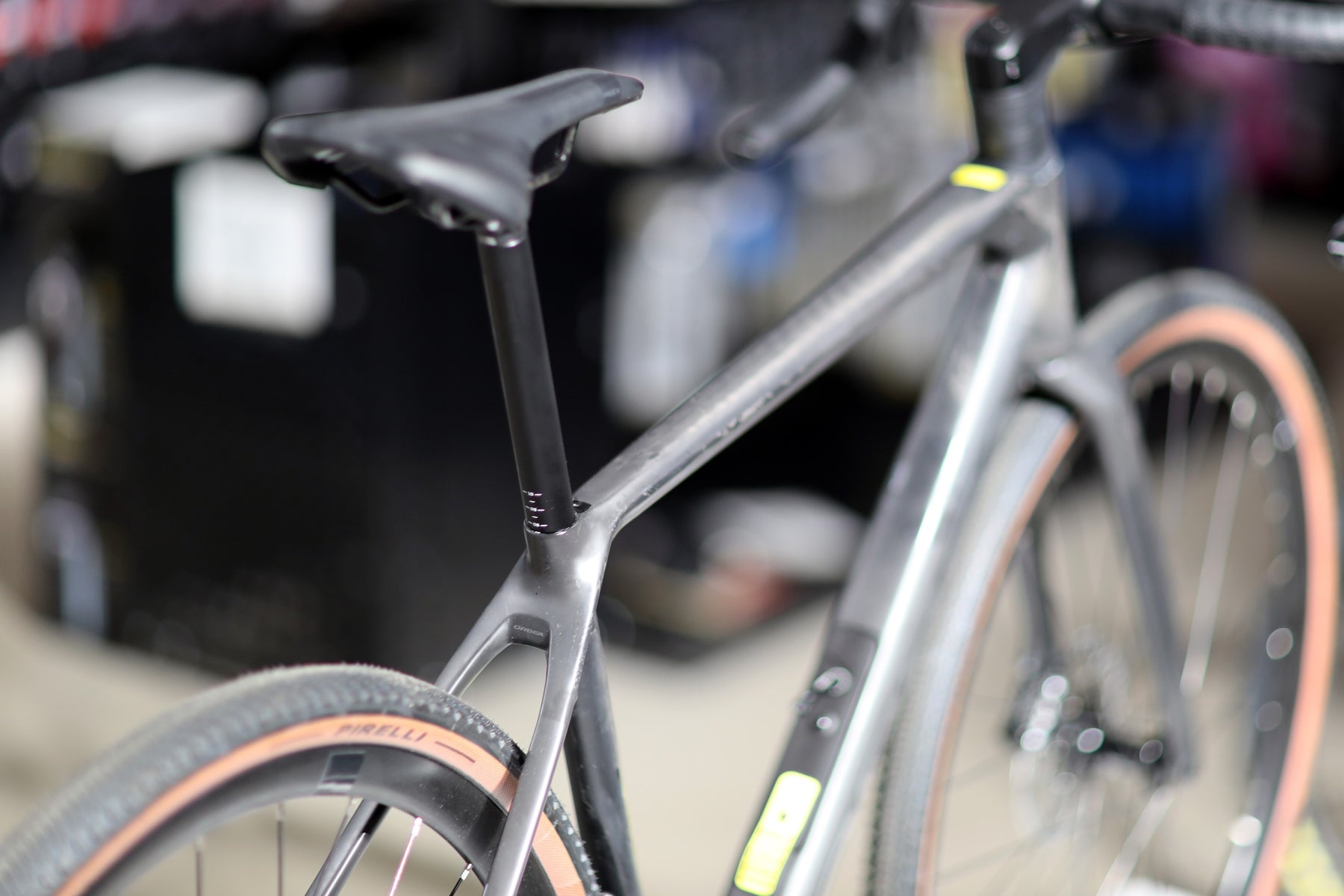 Gravelsykkel med karbonramme, oppbevaring i rammen. 1x12-delt GRX